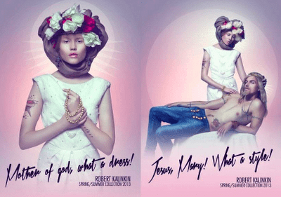 El diseñador Robert Kalinkin ha presentado su nueva colección con un creativo concepto fundamentado en la figura de Jesús y María.