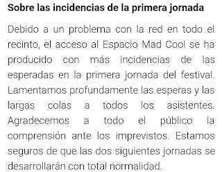 En este momento, no está todo perdido para el Mad, es solo una alerta. Las redes sociales se inundan de tweets continuos a favor y en contra de uno y otro. Con respecto al BBK hay opiniones de las condiciones laborales de los profesionales del evento… el Mad Cool acapara la atención con la falta de seguridad en el recinto.